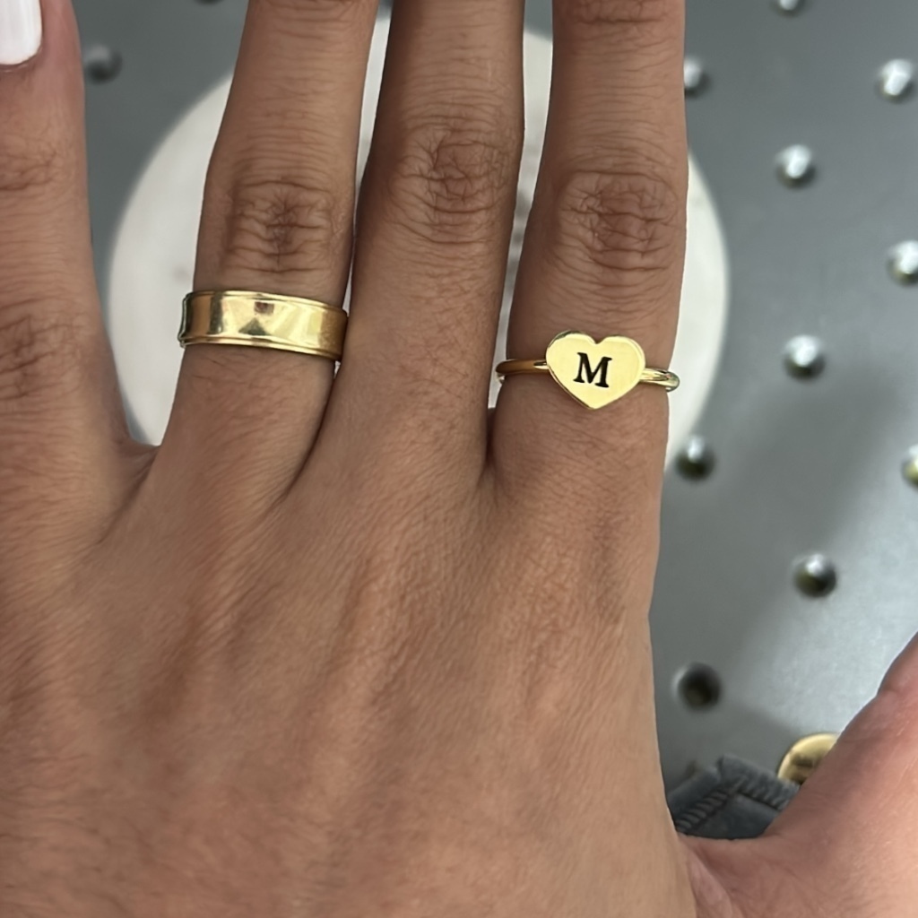 Anel Personalizado a Laser: Eternize momentos especiais com uma peça que carrega sua história. Escolha uma inicial, data, nome, ou símbolos para gravar, criando um anel único e significativo.
