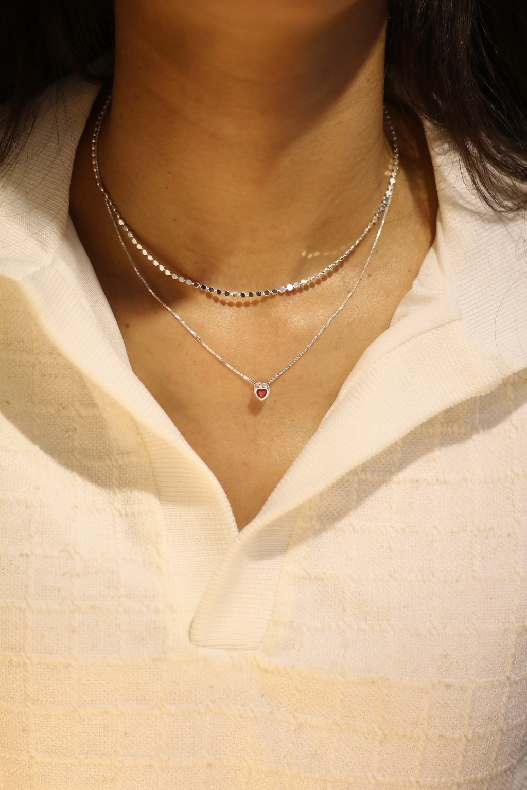 Colar Coração Rosa Fucsia - Banhado a Prata