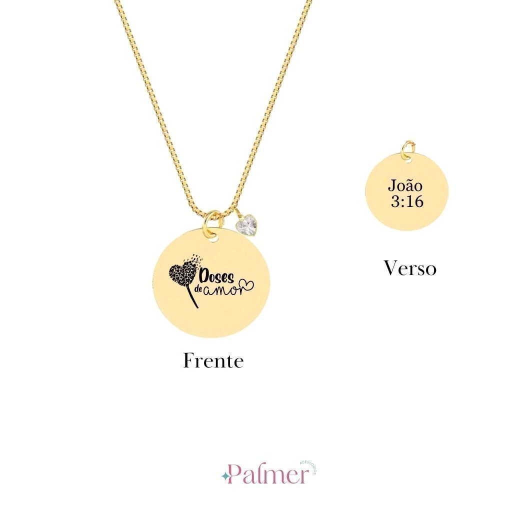 Colar Personalizado a Laser: O Colar Doses de Amor é uma semijoia gravada a laser que simboliza força e esperança.