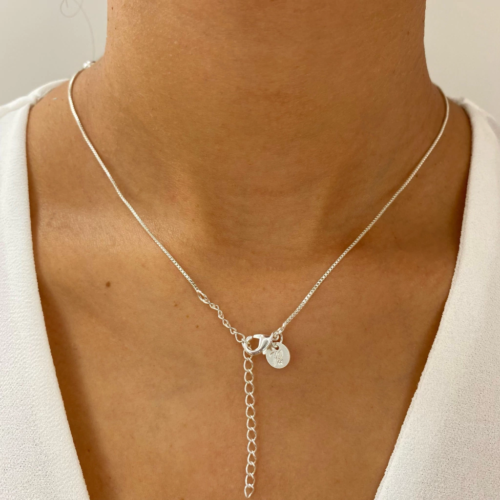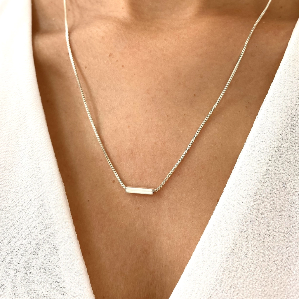Colar Traço, o pingente se move pelo colar, possibilitando sempre está no centro, este modelo pode ser usado em ocasiões elegantes e para uso no dia a dia por ser uma peça coringa!