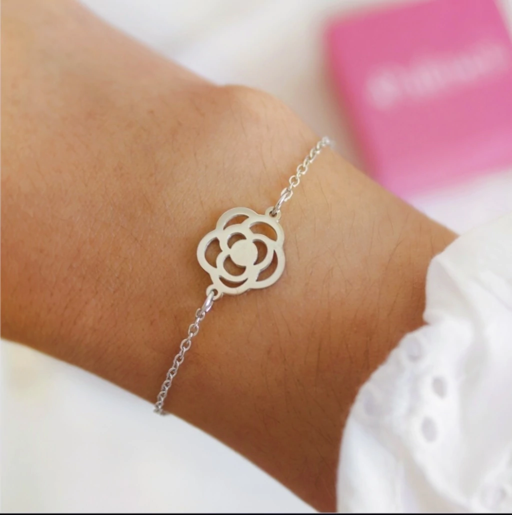 Essa pulseira em aço inoxidável traz o charme atemporal da rosa em um design clássico e delicado — perfeita para quem valoriza beleza, durabilidade e significado.